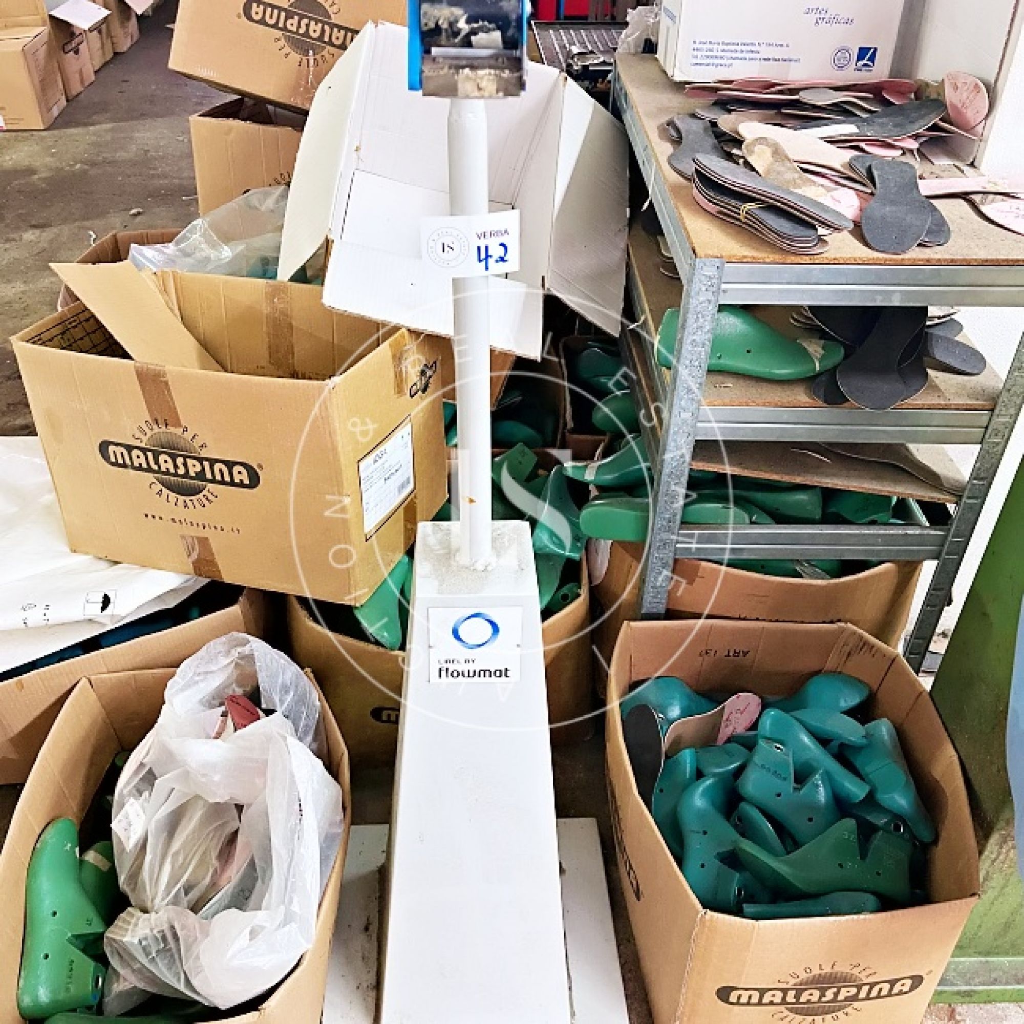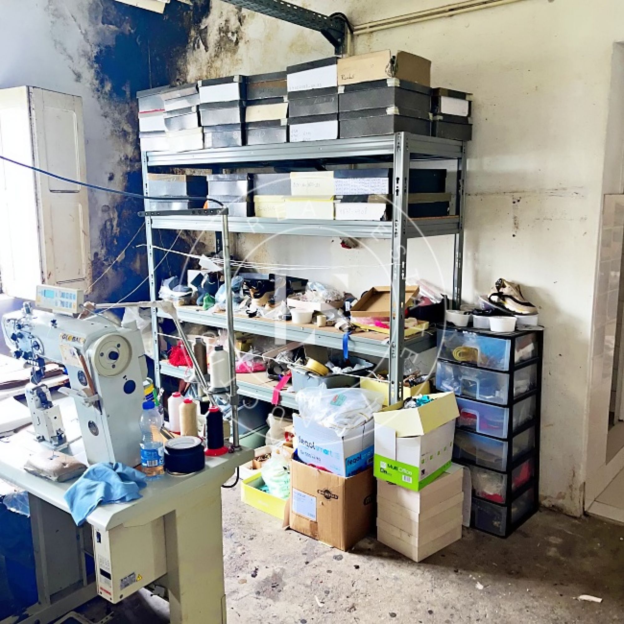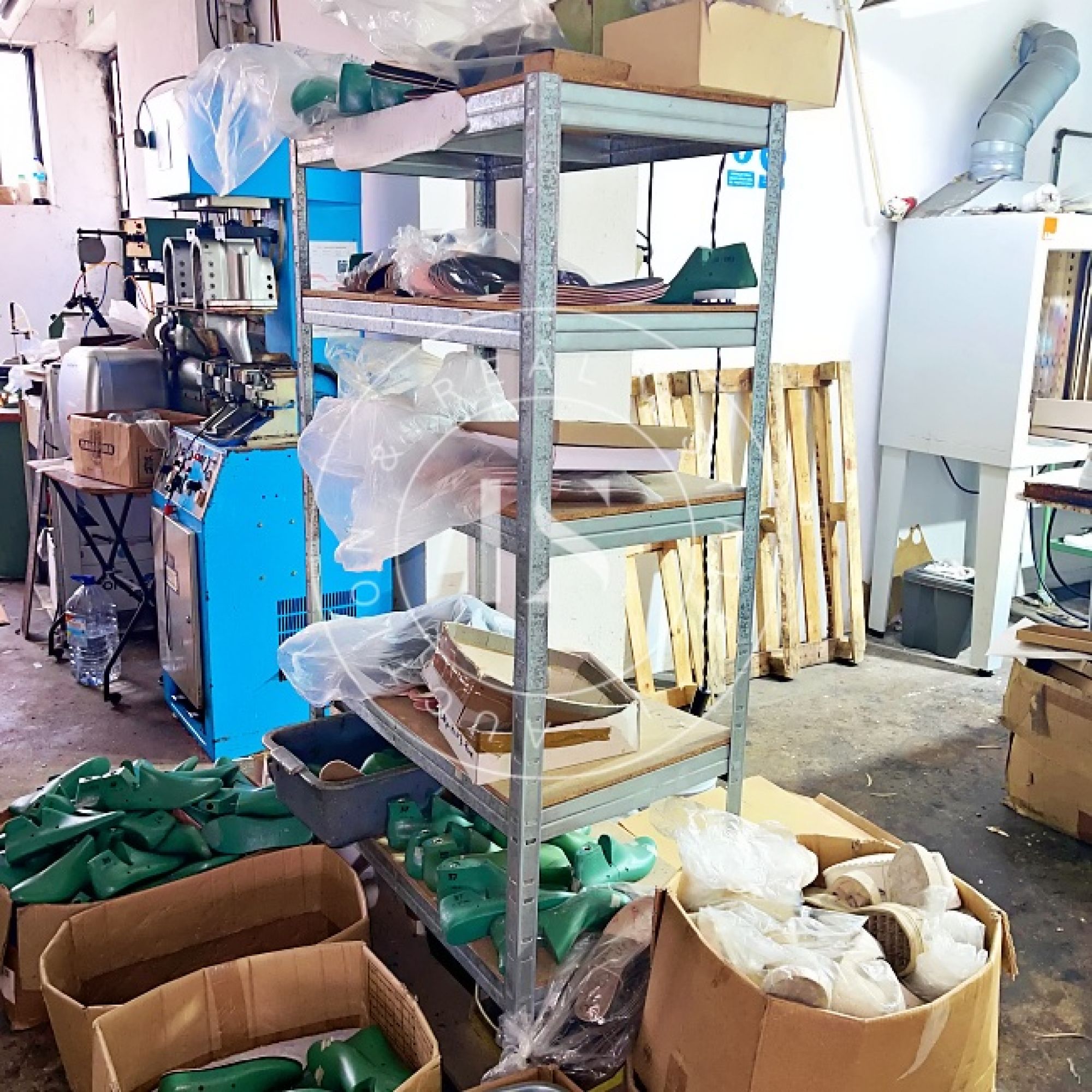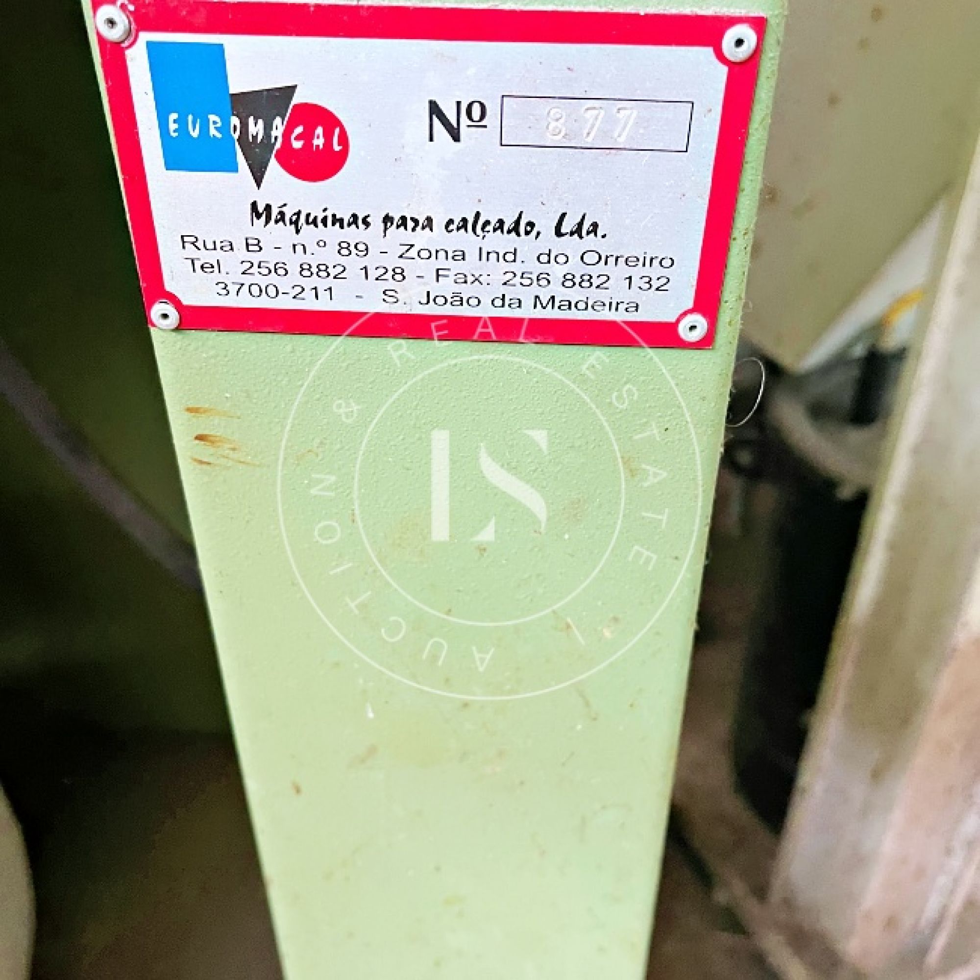 1 computador “LG”, 1 monitor “ASUS”, 3 secretárias, 3 impressoras, lote de calçado diverso (exposição e amostras), 2 mesas de corte, 2 cavaletes, balancé “G999” com cortantes, 5 mesas de trabalho, 14 estantes metálicas, 2 armários metálicos, lote de matérias-primas (peles, sintéticos, solas), máquina de facear “Sagitta”, máquina de timbrar palmilhas, máquina de meter ilhós “AJRA”, máquina de costura “Joyee” JY-Z930, máquina de aplicação manual de ribetes, máquina de colar entre telas, máquinas de costura “Global” (incluindo modelo C-300), 4 carrinhos de transporte metálicos, máquina de canos, máquina de limpar solas, máquina de acabamento “Filsecom”, máquina de moldar contrafortes “Norba” N89CF, máquina de rebaixar, máquina de passar cola, máquina de colar testeiras “Bimatronic”, lote de formeiros com prateleiras, máquina de pregar biqueiras “K78 Cerim”, 2 fornos de aquecer gáspeas (1 “Eletrotecnica”), 2 máquinas de tirar formas, máquina de pregar calquinheiras “K58 Cerim”, máquina lixadeira/fresadeira, máquina de apertar solas, linha transportadora com 28 carros, prensa pneumática “Lima Miver” LM 200, máquina de aquecer solas, máquina escovadeira, máquina sopradora de calor, máquina de pregar saltos “Brustia”, máquina de agrafar, máquina de aplicar adesivo “Flowmat”, máquina de costura “Pfaff” e máquina de facear “Fortuna”.