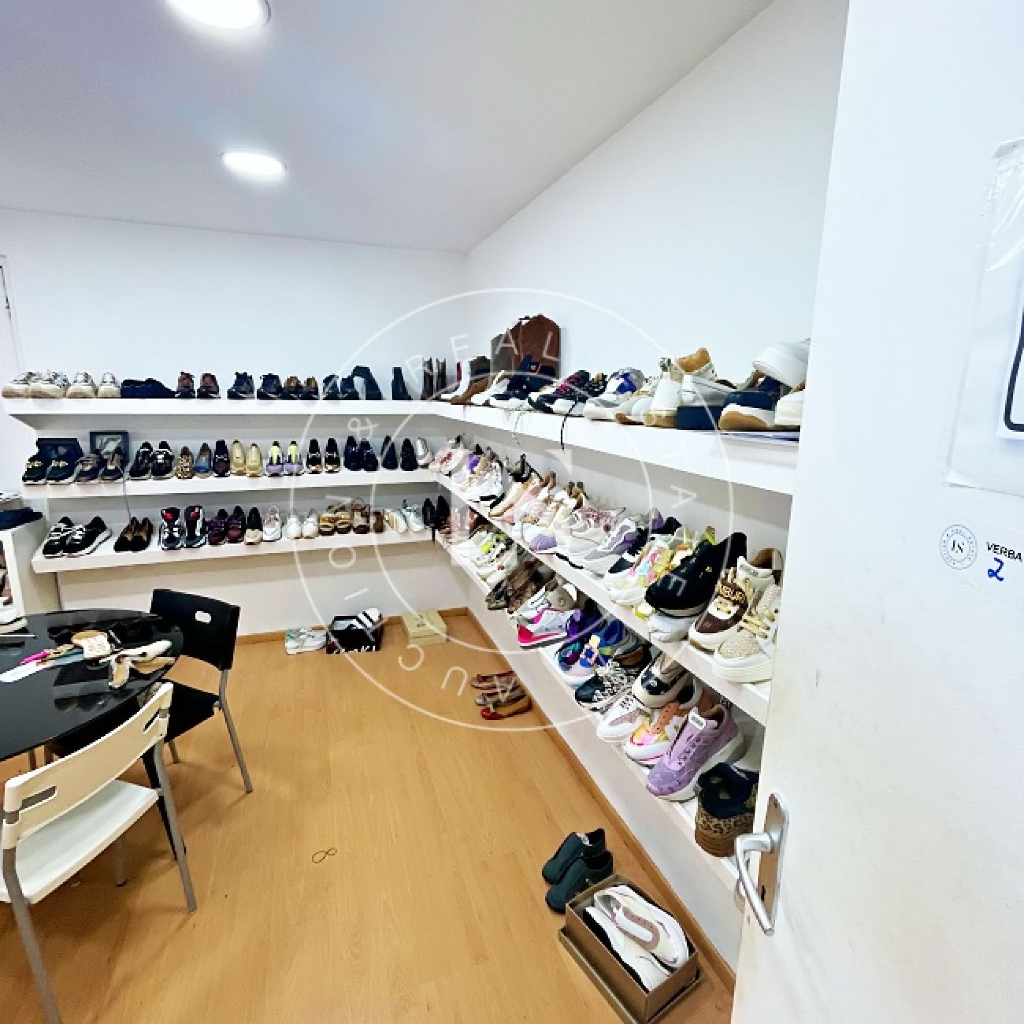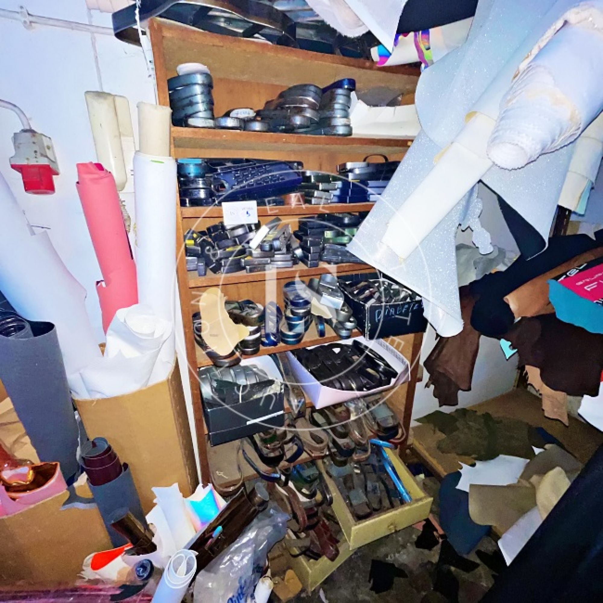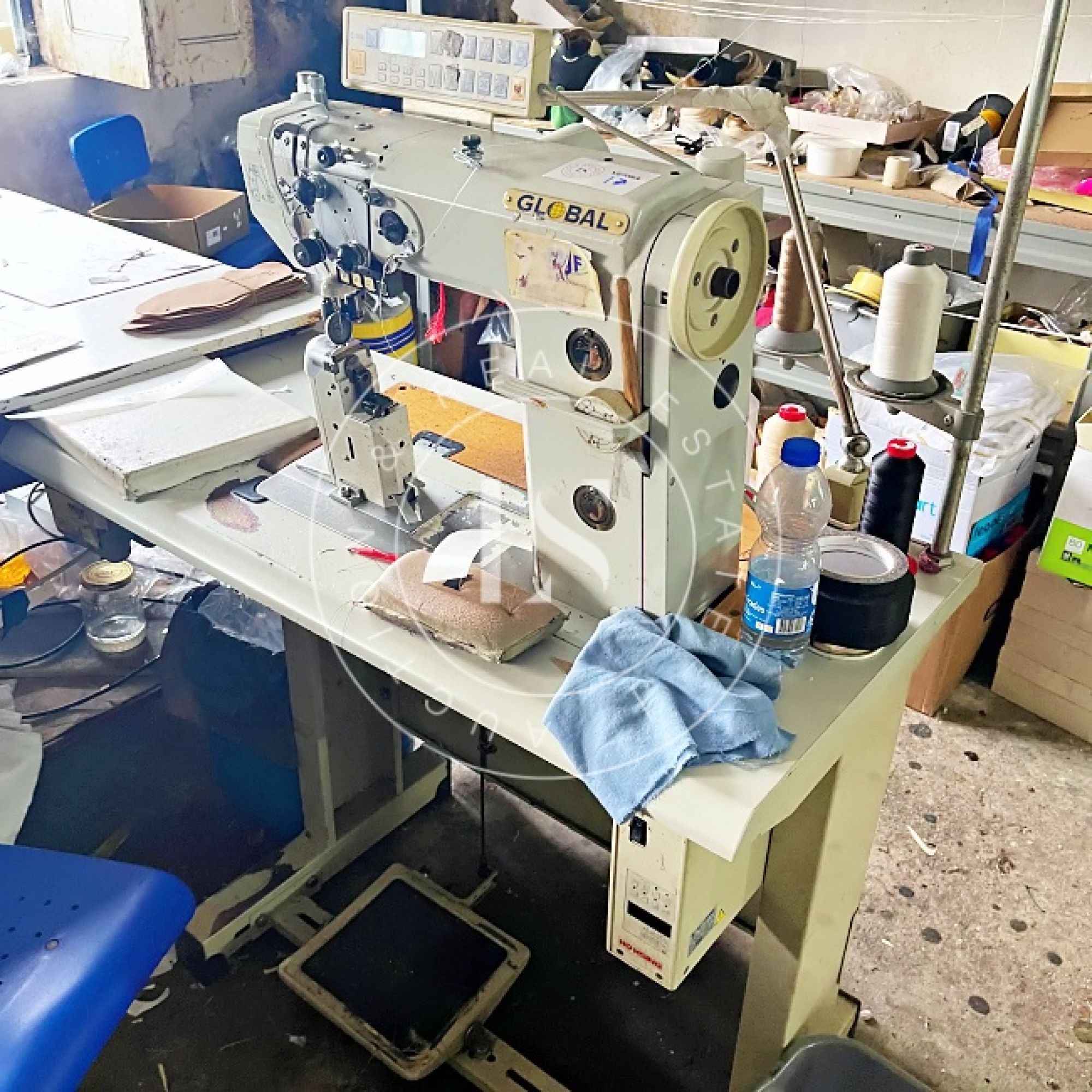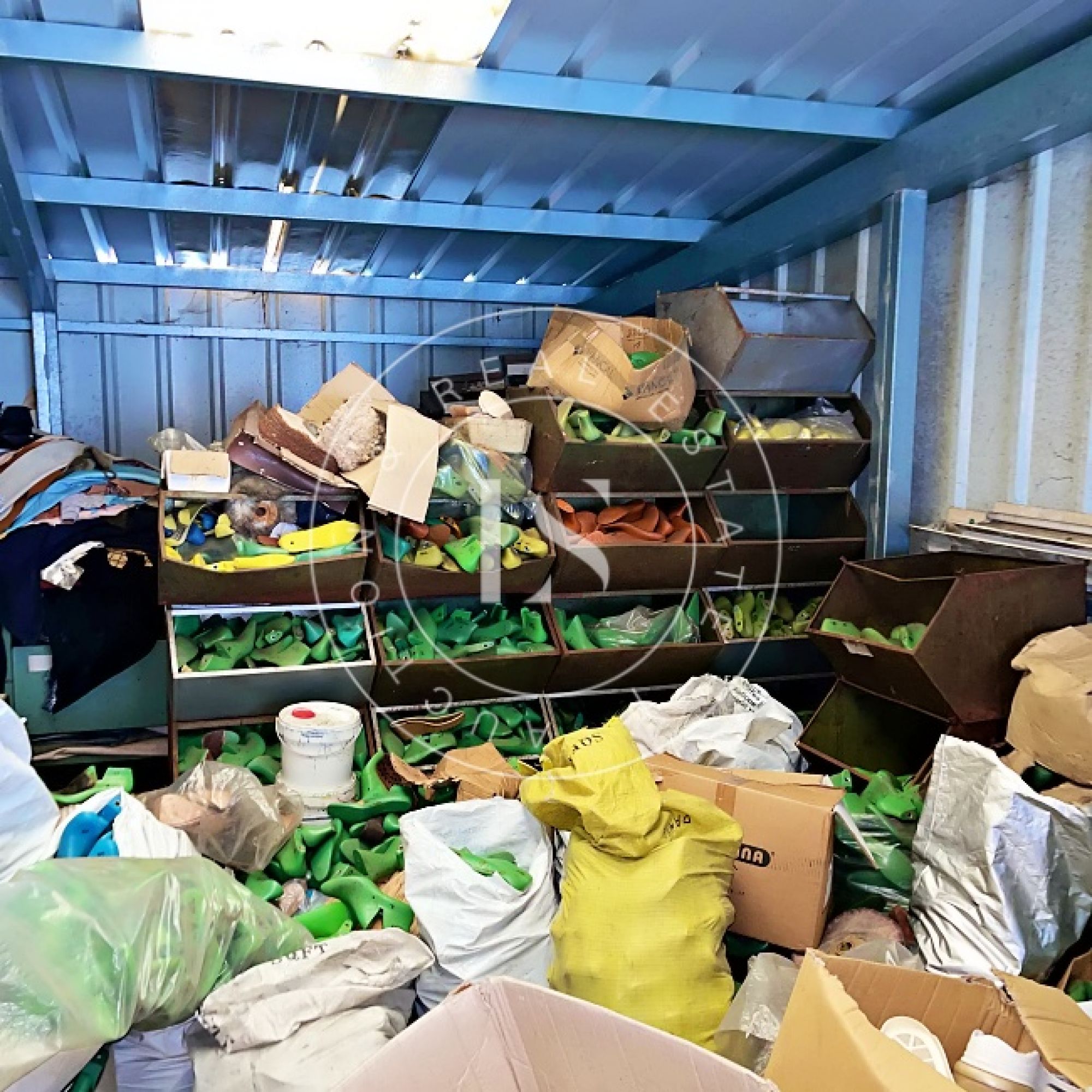 1 computador “LG”, 1 monitor “ASUS”, 3 secretárias, 3 impressoras, lote de calçado diverso (exposição e amostras), 2 mesas de corte, 2 cavaletes, balancé “G999” com cortantes, 5 mesas de trabalho, 14 estantes metálicas, 2 armários metálicos, lote de matérias-primas (peles, sintéticos, solas), máquina de facear “Sagitta”, máquina de timbrar palmilhas, máquina de meter ilhós “AJRA”, máquina de costura “Joyee” JY-Z930, máquina de aplicação manual de ribetes, máquina de colar entre telas, máquinas de costura “Global” (incluindo modelo C-300), 4 carrinhos de transporte metálicos, máquina de canos, máquina de limpar solas, máquina de acabamento “Filsecom”, máquina de moldar contrafortes “Norba” N89CF, máquina de rebaixar, máquina de passar cola, máquina de colar testeiras “Bimatronic”, lote de formeiros com prateleiras, máquina de pregar biqueiras “K78 Cerim”, 2 fornos de aquecer gáspeas (1 “Eletrotecnica”), 2 máquinas de tirar formas, máquina de pregar calquinheiras “K58 Cerim”, máquina lixadeira/fresadeira, máquina de apertar solas, linha transportadora com 28 carros, prensa pneumática “Lima Miver” LM 200, máquina de aquecer solas, máquina escovadeira, máquina sopradora de calor, máquina de pregar saltos “Brustia”, máquina de agrafar, máquina de aplicar adesivo “Flowmat”, máquina de costura “Pfaff” e máquina de facear “Fortuna”.
